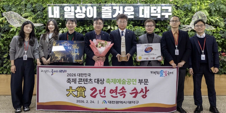 구는 이번 성과를 바탕으로 오는 4월 4~5일 이틀간 대청공원 일원에서 ‘2026 대덕물빛축제’ 메인 행사를 개최한다. 3년 연속 수상의 품격에 걸맞은 한층 강화된 프로그램을 선보일 예정이다.