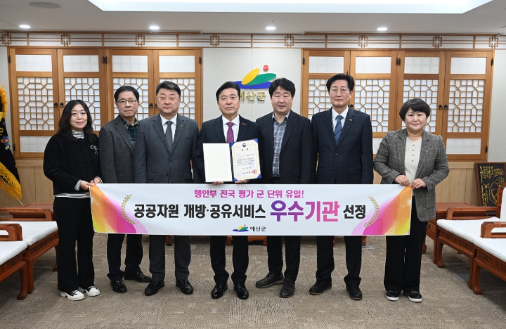 [뉴스노크=김인호 기자] 예산군은 행정안전부가 주관한 ‘2025년 공공자원 개방·공유서비스 실적평가’에서 우수 지자체로 선정돼 행정안전부 장관상을 수상했다고 밝혔다.