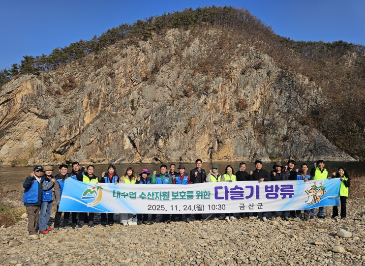 [뉴스노크=김인호 기자] 금산군은 지난 24일 부리면 적벽강 일원에서 지역 하천 생태계 복원과 수질 개선을 위해 약 300만 패의 다슬기를 방류했다.