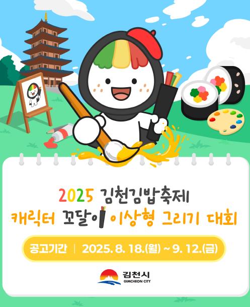 [뉴스노크=김인호 기자] 김천시는 10월 25일부터 26까지 이틀간 열리는 『2025 김천김밥축제』의 사전 분위기 조성과 홍보를 위해 ‘김밥축제 캐릭터 꼬달이 이상형 그리기 대회’를 개최한다.