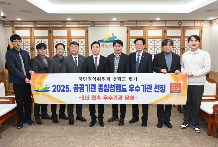 [뉴스노크=김인호 기자] 예산군은 국민권익위원회가 주관한 ‘2025년도 공공기관 청렴도 평가’에서 종합청렴도 2등급을 획득하며 9년 연속 우수기관을 달성했다고 밝혔다.