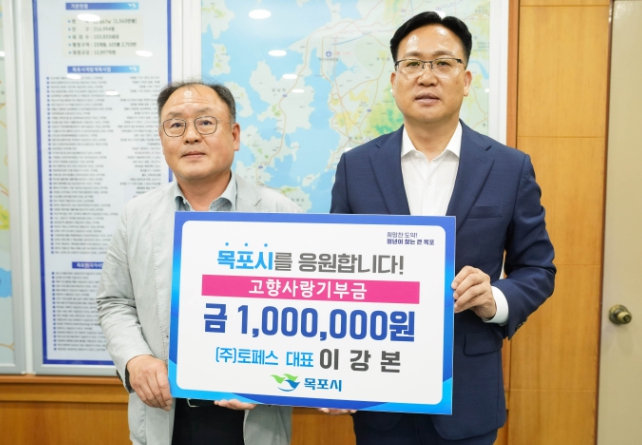 [뉴스노크=김인호 기자] 목포시는 지난 16일, ㈜토페스 이강본 대표가 고향사랑기부금 100만 원을 기탁했다고 밝혔다.