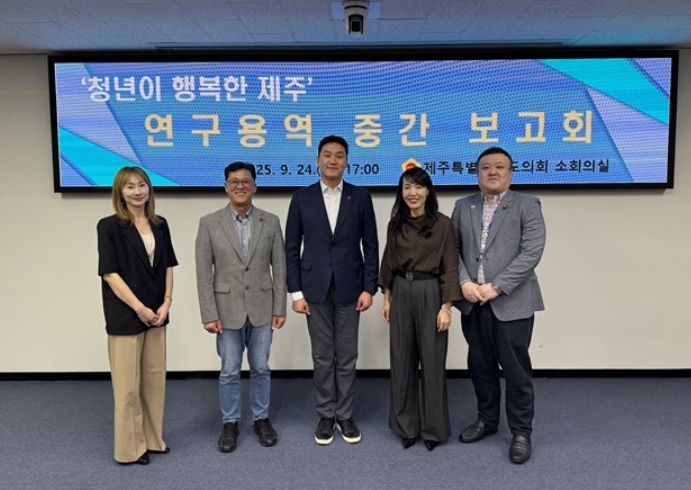 [뉴스노크=김인호 기자] 제주특별자치도의회 김기환 의원(더불어민주당, 이도2동 갑)이 대표를 맡고 있는 의원 연구단체 ‘청년이 행복한 제주’가 연구용역 중간 보고회를 개최했다.