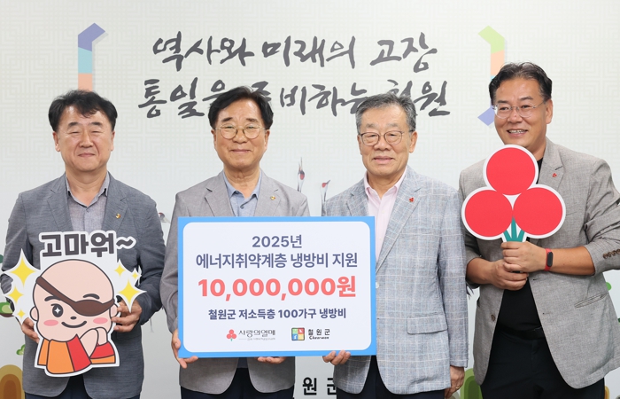 [뉴스노크=김인호 기자] 철원군은 강원도사회복지공동모금회에서 지난 16일 철원군청을 방문해 2025년 에너지취약게층을 위하여 총 100가구(가구당 100,000원) 냉방비 지원금 천만원을 전달했다고 전했다.