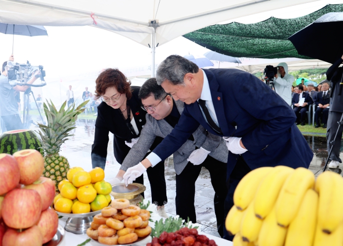이날 진혼제는 영령에 대한 묵념, 헌화 및 분향, 주제사, 진혼사, 추도사, 추모공연 순으로 진행됐다.