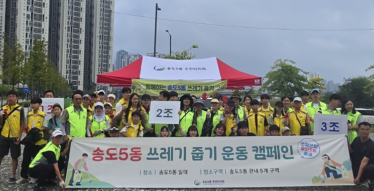 [뉴스노크=김인호 기자] 연수구 송도5동 주민자치회(회장 채한진)는 지난 6일 지역 주민들과 함께 쾌적하고 살기 좋은 마을 조성을 위한 환경정화 캠페인 ‘쓰담쓰담 송도5동 줍깅’을 실시했다.