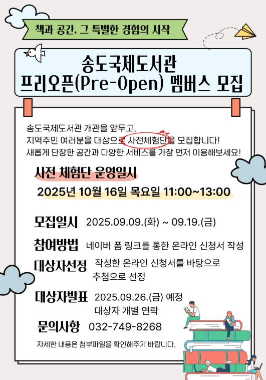 ▲ 송도국제도서관 ‘프리오픈 멤버스(사전체험단)’ 모집 |