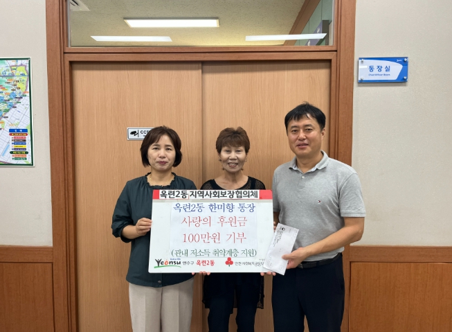 ▲ 연수구 옥련2동 한미향 통장, 취약계층 위해 100만 원 기부 |