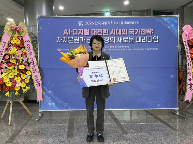 김미리 의원은 수상 소감을 통해 “김장문화는 평범한 음식 준비를 넘어 세대와 이웃을 잇는 우리 사회의 중요한 공동체 문화”라며 “이번 조례가 전통의 가치를 오늘의 정책으로 연결하는 출발점이 되길 바란다”고 밝혔다. 이어 “앞으로도 도민의 삶 속에서 실제로 작동하는 생활밀착형 입법을 이어가겠다”고 말했다.