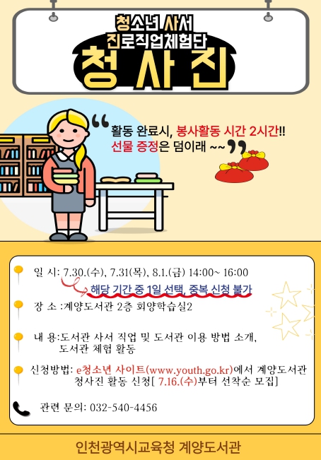 자세한 사항은 계양도서관 종합자료실로 문의하면 된다.