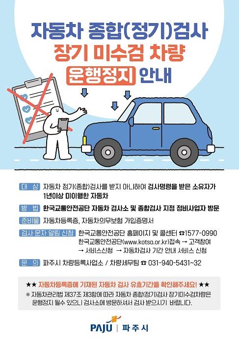 ▲ 파주시, 자동차 검사 장기 미수검 차량 운행정지명령 처분 강화 |