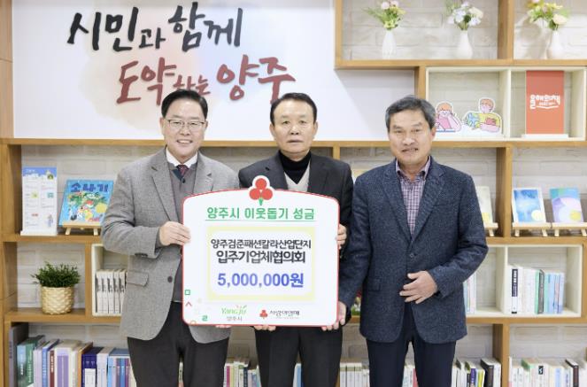 [뉴스노크=김인호 기자] 양주시가 지난 15일 시장실에서 양주검준패션칼라사업협동조합을 비롯한 관련 단체 및 기업으로부터 이웃돕기 성금과 성품을 기탁받았다고 밝혔다.
