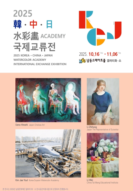 [뉴스노크=김인호 기자] 인천시 남동구 남동문화재단은 2025년 갤러리 화·소 전시공간지원사업의 세 번째 전시로 ‘2025 한·중·일 수채화 아카데미 국제교류전’을 개최한다고 16일 밝혔다.