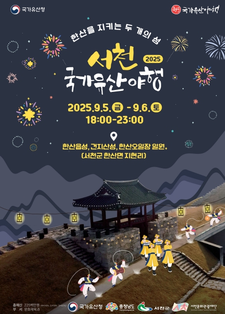 [뉴스노크=김인호 기자] 서천군이 주최하고 (재)서천문화관광재단이 주관하는 제2회 '2025 서천국가유산야행'이 다음 달 5일부터 이틀 간,‘한산을 지키는 두 개의 성’을 주제로 한산면 지현리 일원에서 열린다.