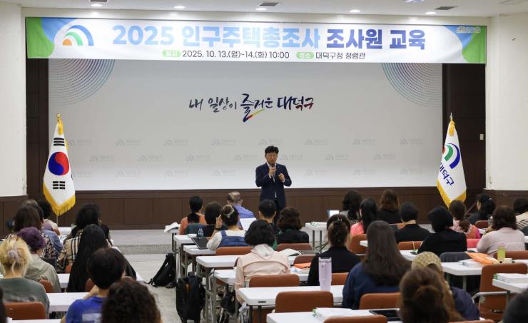 [뉴스노크=김인호 기자] 대전 대덕구는 10월 13~14일 양일간 구청 청렴관에서 ‘2025 인구주택총조사’ 현장 조사를 수행할 조사원 및 예비 조사원을 대상으로 교육을 진행했다고 밝혔다.