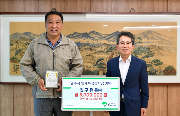 | ▲ 영주시 미래 인재를 위한 소중한 나눔, 친구유통㈜ 인재육성장학금 500만 원 기탁 |