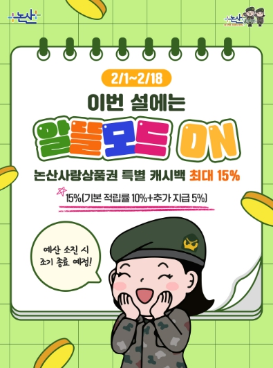 설 명절 맞아 논산사랑상품권 특별 적립금(캐시백) 최대 15%제공