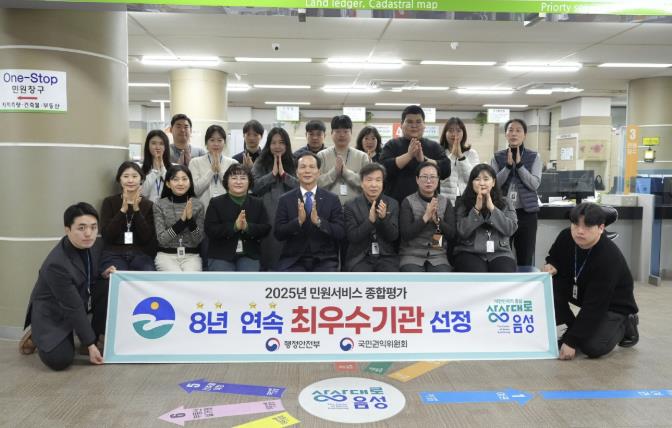 [뉴스노크=김인호 기자] 음성군이 행정안전부와 국민권익위원회가 공동 주관한 ‘2025년 민원서비스 종합평가’에서 최고 등급을 받아 8년 연속 최우수기관으로 선정되며, 탁월한 민원행정 역량을 다시 한 번 인정받았다.