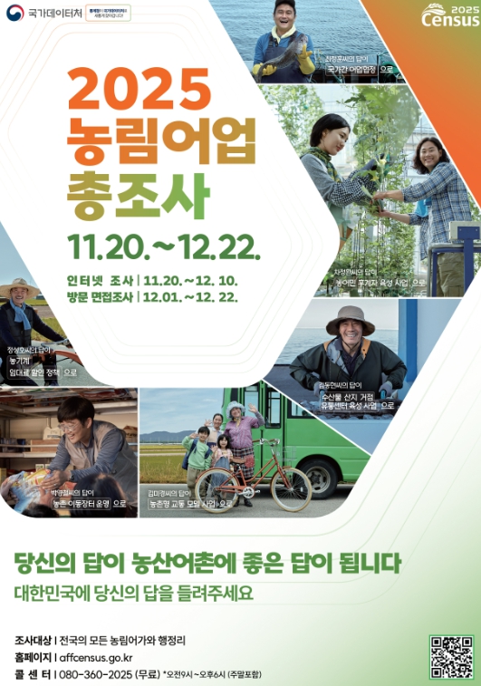 군 관계자는 “급변하는 농림어업 환경에 능동적으로 대응하기 위해서는 현재 실태를 정확히 파악하는 것이 무엇보다 중요하다”며 “국가 미래 전략을 마련하기 위한 중요한 조사인 만큼 관내 농림어업인의 적극적인 참여를 바란다.”고 말했다.