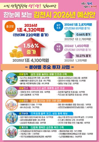 한편, 시가 제출한 2026년도 본예산안은 오는 11월 26일부터 열리는 제256회 김천시의회 제2차 정례회에서 심의·의결할 예정이다.