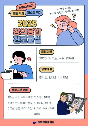 올해 진로교실의 주제는 ‘이 직업 어때? 우리가 몰랐던 작가라는 세계’로 중학생들에게 다양한 작가 직업군과 창의적인 진로 영역을 소개하고 자기 주도적인 진로 설계를 돕기 위해 기획됐다.