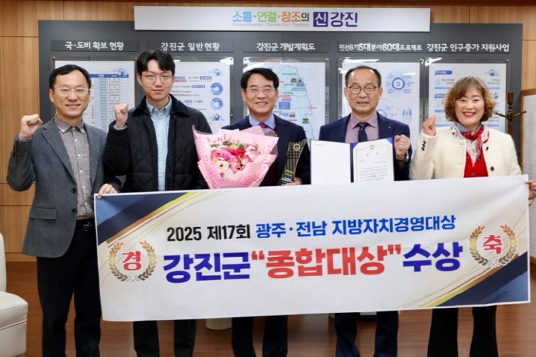 [뉴스노크=김인호 기자] 강진군이 지난 26일 광남일보가 주관한 ‘제17회 지방자치경영대상’에서 종합대상을 수상했다.