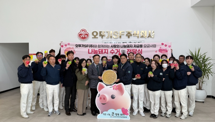 김성진 위원장은 “한 해 동안 따뜻한 마음으로 돼지저금통을 채워주신 오뚜기에스에프(주) 임직원 여러분께 깊이 감사드린다”라며 “기업과 지역사회가 함께 만드는 따뜻한 나눔문화가 확산되길 기대한다”라고 감사의 뜻을 전했다.