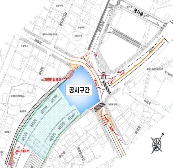 또한 제2한천교 서측 이면도로는 차량 진입이 통제되지만, 주민 불편을 최소화하기 위해 한라아파트 앞 기존 반복개구부에 임시 통행로를 개설할 계획이다.