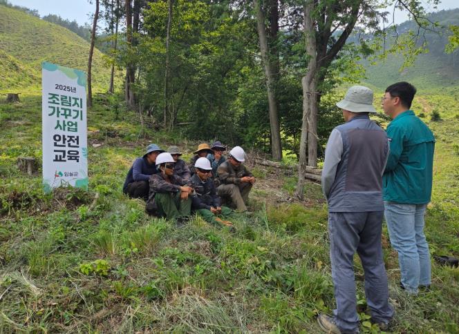 교육에서는 보호구 착용 의무 및 예초기‧톱 등 장비 안전 사용법, 폭염‧낙상‧전도 등 작업 중 사고 예방 요령과 벌‧뱀 등 산림 내 위험 요소 대응 및 응급처치 방법 등을 중점적으로 다뤘다.