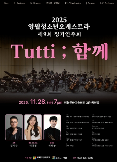 [뉴스노크=김인호 기자] (재)영월문화관광재단은 오는 11월 28일 오후 7시, 영월문화예술회관 3층에서 ‘2025 영월청소년오케스트라 제9회 정기연주회 'Tutti : 함께'’를 개최한다고 밝혔다.