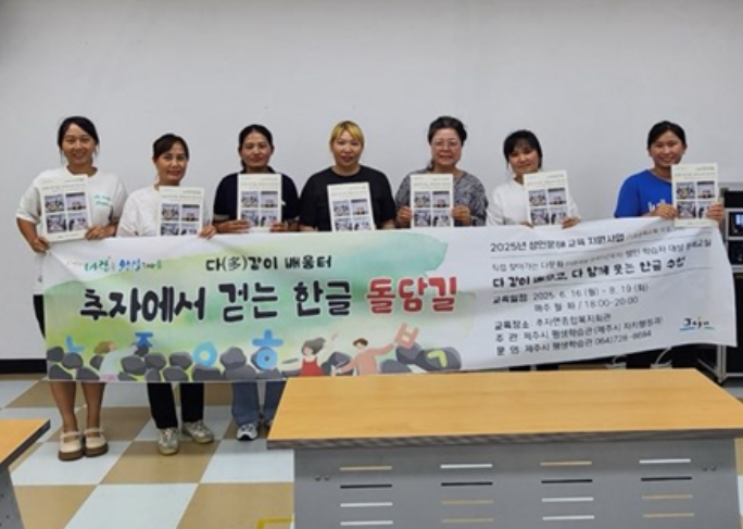 ‘돌담 밑 첫걸음(2기)’ 과정은 결혼이주여성을 대상으로 초등 1단계 수준의 실생활 중심 한글교육을 제공하며, 오는 11월 6일까지 매주 목요일과 금요일 제주글로벌센터에서 총 20회 운영된다.