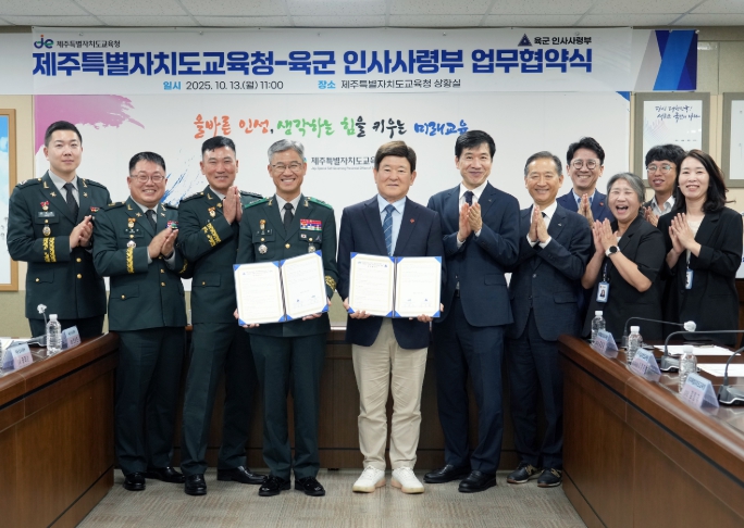 [뉴스노크=김인호 기자] 제주특별자치도교육청은 13일 도교육청 상황실에서 육군 인사사령부와 고등학생들의 진로 탐색 기회 확대를 위한 업무협약을 체결했다.