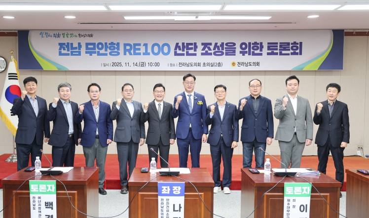 [뉴스노크=김인호 기자] 전라남도의회는 지난 11월 14일 도의회 초의실에서 열린 ‘전남 무안형 RE100 산단 조성을 위한 토론회’를 성공적으로 개최했다고 밝혔다.