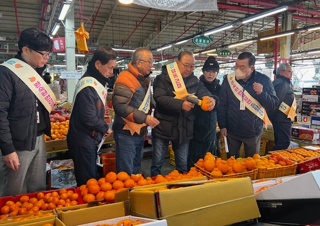 [뉴스노크=김인호 기자] 서귀포시는 설 명절을 앞두고 만감류 유통질서 확립과 가격 안정화를 위해 29일 만감류연합회와 서귀포시가 합동으로 서귀포시 향토오일시장과 매일올레시장을 방문해 만감류 및 온주밀감 상품품질기준 안내문을 상인에게 전달하고, 상품 품질기준 준수 및 만감류 완숙과 판매 등에 대한 현장 중심 홍보 활동을 실시했다.
