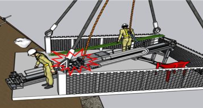 | ▲ 재해 상황 - 작업자 구명줄이 천공기 회전부에 말려 끼임 |