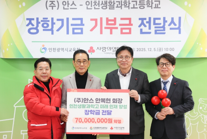 [뉴스노크=김인호 기자] 인천광역시교육청은 5일 ‘㈜안스–인천생활과학고 장학기금 전달식’을 열고 지역 기업과의 협력을 기반으로 직업계고 인재 양성 지원을 강화했다.