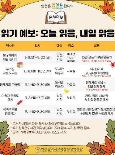 ▲ 인천광역시교육청평생학습관, 독서의 달 맞이 ‘모닝페이지, 매일 씁니다’ 운영 |