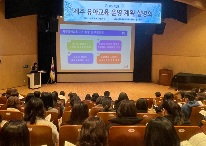 [뉴스노크=김인호 기자] 제주특별자치도교육청은 4일 제주학생문화원 소극장에서 공·사립 유치원 교원 200여 명을 대상으로‘2026학년도 제주 유아교육 운영계획 설명회’를 개최했다.
