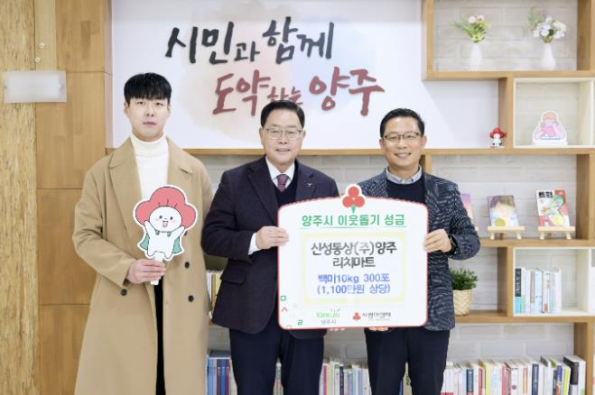 | ▲ 양주시 신성통상(주) 리치마트, 설 명절 맞아 어려운 이웃에 백미(10kg) 300포 기부 |