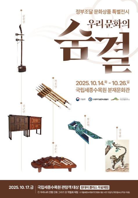 [뉴스노크=김인호 기자] 조달청은 국립세종수목원, (사)정부조달문화상품협회와 함께 10월 14일부터 10월 26일까지 국립세종수목원 분재문화관에서 정부조달 문화상품 전시, 전통문화 체험 등을 즐길 수 있는 ‘우리 문화의 숨결’ 특별전시를 개최한다.