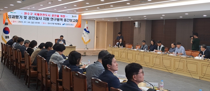 [뉴스노크=김인호 기자] 연수구는 지난 18일 구청 대상황실에서 구청장, 구의원, 안전 관련 부서장, 안전도시위원회 등 50여 명이 참석한 가운데 ‘연수구 국제안전도시 공인’을 위한 성과 평가 및 공인 실사 지원 연구용역 중간 보고회를 개최했다.