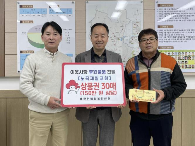 윤석문 백학면장은 “어려운 이웃을 위해 한결같은 나눔에 앞장서는 노곡제일교회에 감사드린다”며 “도움이 필요한 이웃들에게 소중히 전달하겠다”고 밝혔다.