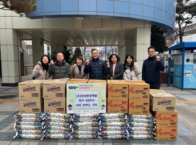 [뉴스노크=김인호 기자] 의정부시 호원2동주민센터는 2월 10일 관내 기업인 ㈜의정환경개발이 설 명절을 맞아 어려운 이웃들을 위해 백미 600kg과 라면 30상자를 기탁하며 따뜻한 나눔을 실천했다고 전했다.