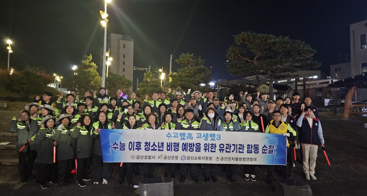 [뉴스노크=김인호 기자] 금산군은 청소년들이 건전한 분위기 속에서 시험을 치르고 안전하게 귀가할 수 있도록 2025학년도 대학수학능력시험일이 치러진 지난 13일 금산읍과 중부대 일원에서 청소년 유해환경 점검에 나섰다.