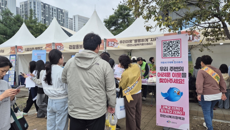 [뉴스노크=김인호 기자] 천안시는 지난 18~19일 이틀간 천안종합운동장에서 열린 ‘2025 빵빵데이 천안’ 축제 현장에서 숨은 위기가구 발굴을 위한 ‘우리이웃, 빵빵하게 지켜요’ 행복키움지원단 홍보부스를 운영했다.