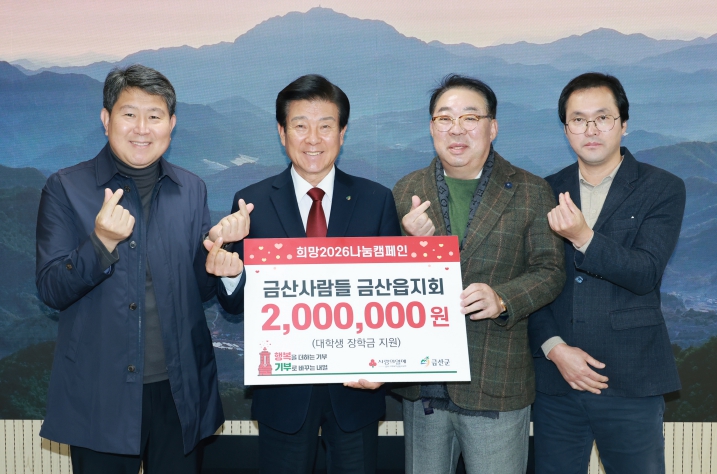 군 관계자는 “어려운 이웃을 돕는 금산사람들 급산읍지회 회원들의 따뜻한 마음에 깊이 감사드린다”며 “전달된 장학금은 학생들의 학업 지원에 소중하게 사용될 것”이라고 말했다.