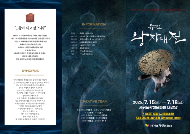 [뉴스노크=김인호 기자] 서귀포시교육지원청 서귀포학생문화원은 지역 청소년들의 문화예술 향유 기회를 확대하고 예술 감수성과 인성 함양을 위한 2025년 명품 문화예술 릴레이 초청공연을 오는 15일부터 18일까지 4일간 개최한다.