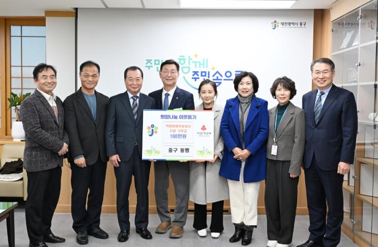 [뉴스노크=김인호 기자] 대전 중구는 지난 8일 ‘중구 동행’에서 학대피해아동쉼터 입소아동을 위한 기부금 100만 원을 기탁했다고 밝혔다.