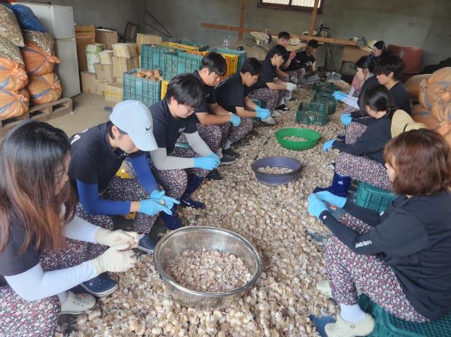 학생들은 5개 팀으로 나뉘어 경천면 지역 농가에서 콩 때우기, 들깨 모종 심기, 잡초 제거, 마늘 쪼개기 등 다양한 농작업을 지원하며 지역 주민들과 교감하는 시간을 가졌다.