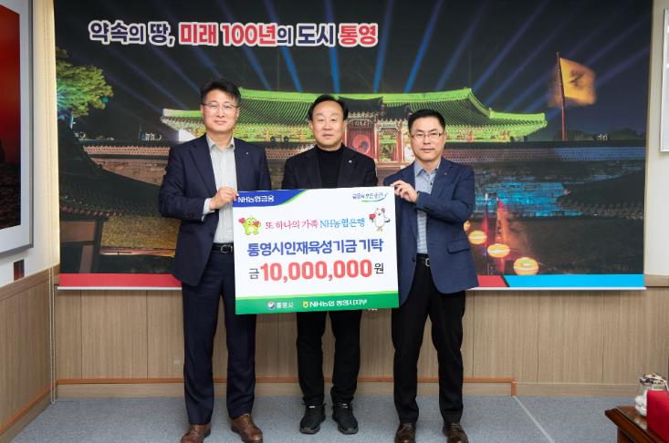NH농협은행 통영시지부는 통영시 법인카드․공무원 복지카드 등의 사용액에 대한 적립금을 포함해 매년 꾸준히 인재육성기금에 기부하고 있으며, 어려운 세대를위한 성금․물품 지원 등 다양한 지역사회 공헌 활동에도 앞장서고 있다.